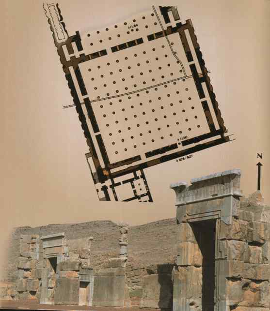 به اين تصوير از تخت جمشيد، در گاه ورودی شمال غربی تالاری بنام صد ستون خوب توجه کنيد.
